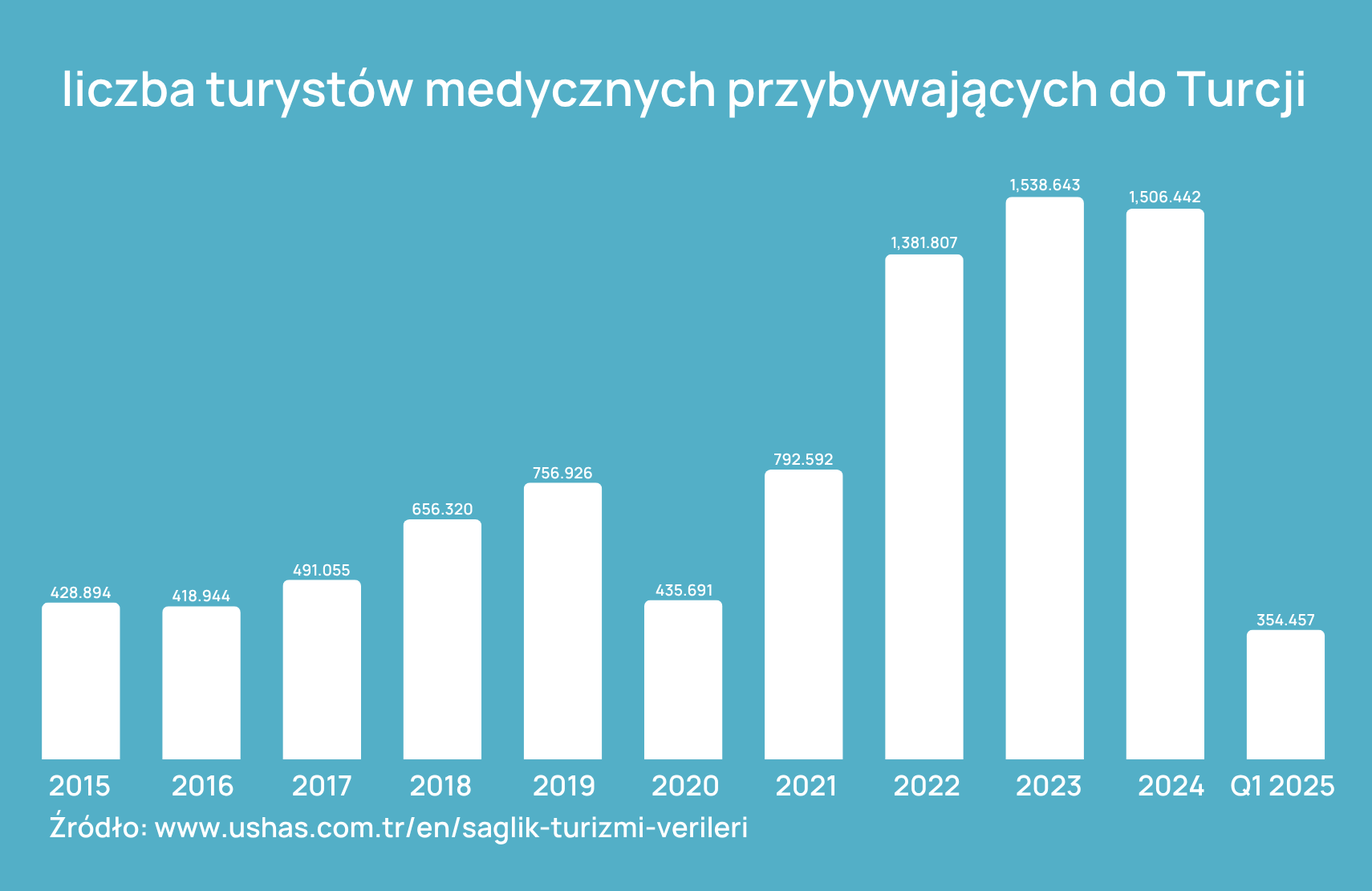 W 2024 roku z usług medycznych w Turcji skorzystało aż 1.5 miliona zagranicznych pacjentów. Ogromna część z nich przyjechała w jednym celu – po profesjonalny przeszczep włosów, co czyni Stambuł absolutną światową stolicą tej specjalizacji a tutejsze kliniki mogą pochwalić się największym na świecie doświadczeniem, które przekłada się na tysiące udanych zabiegów rocznie (na podstawie oficjalnych danych Tureckiego Urzędu Statystycznego TurkStat, podawanych przez Turecką Agencję Zdrowia USHAŞ).