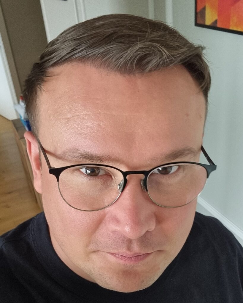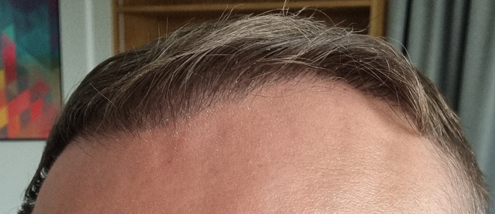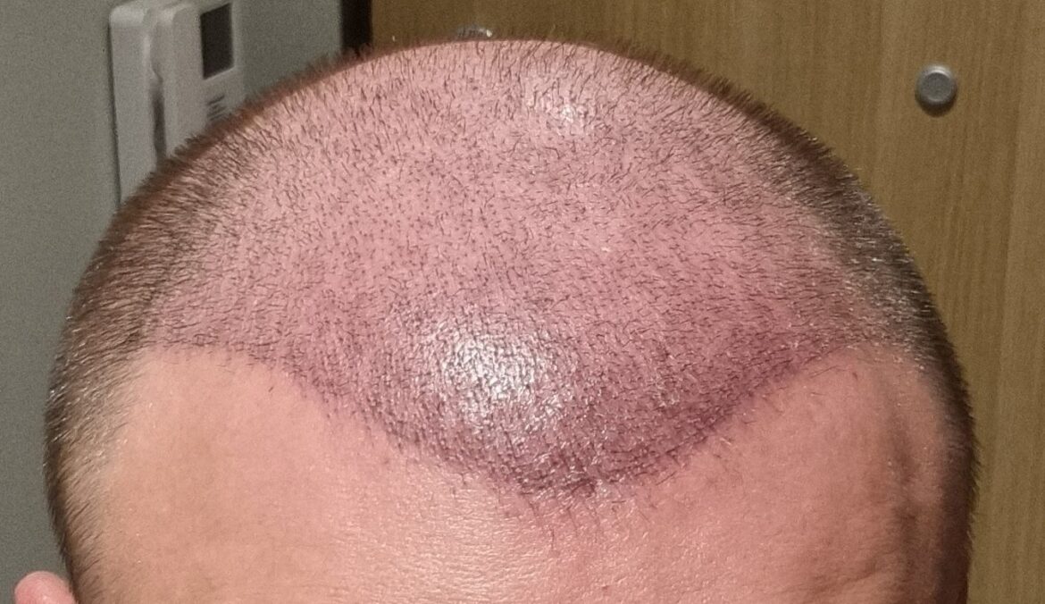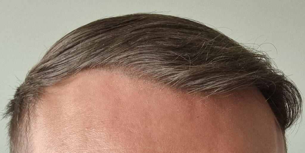 Już po pół roku linia włosów w okolicach skroni odbudowała się, pełen efekt spodziewany jest po roku od przeszczepu.